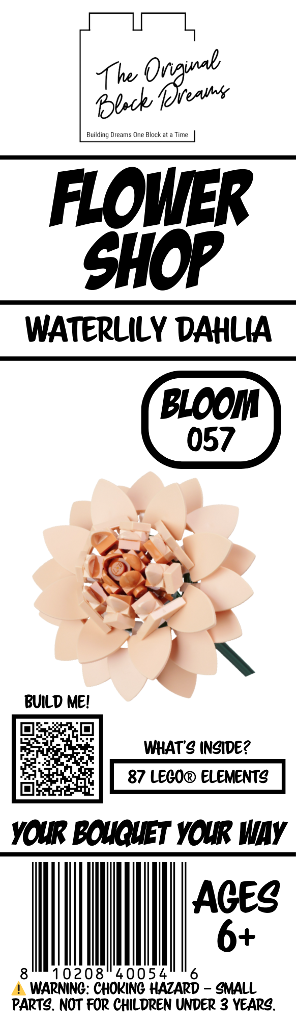 Build a beautiful brick flower with the Waterlily Dahlia. Designed using genuine LEGO® elements. Perfect for building a custom bouquet. Your Bouquet Your Way.